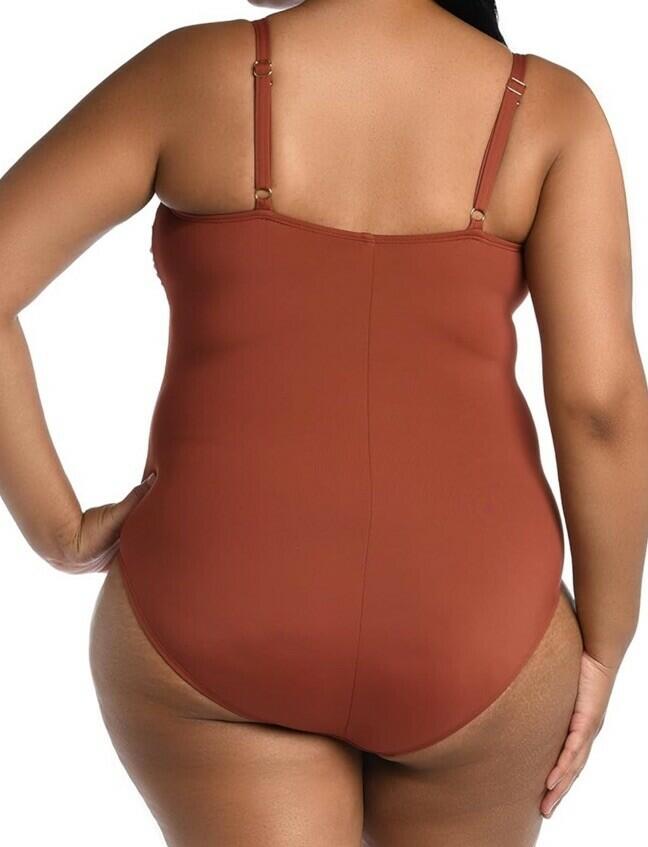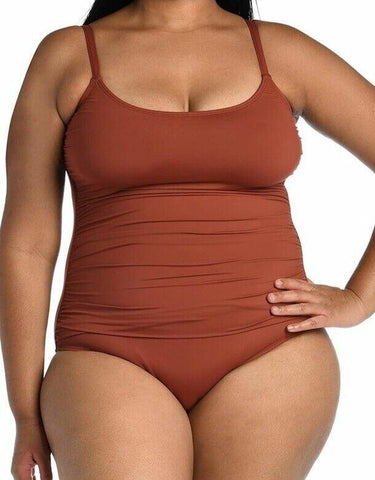 NWT La Blanca Island Goddess Rouched Body Lingerie Mio One Piece Cinnamon Sz 2 - Ufashion