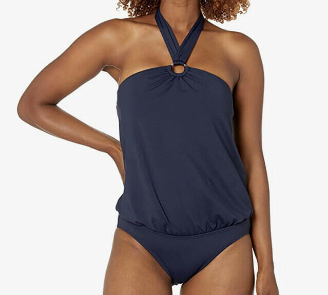 NWT  Michael Kors Iconic Solids Logo Ring Trim Halter Blouson One-Piece Size 6 - Ufashion NWT Michael Kors Iconic Solids Logo Ring Trim Halter Blouson One-Piece Size 6 - Ufashion