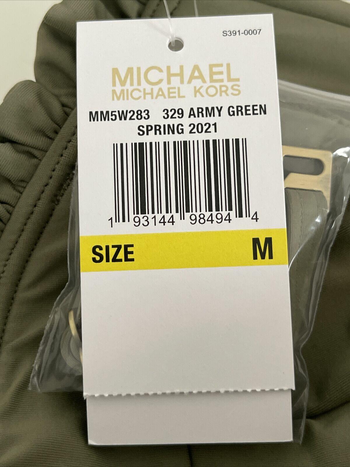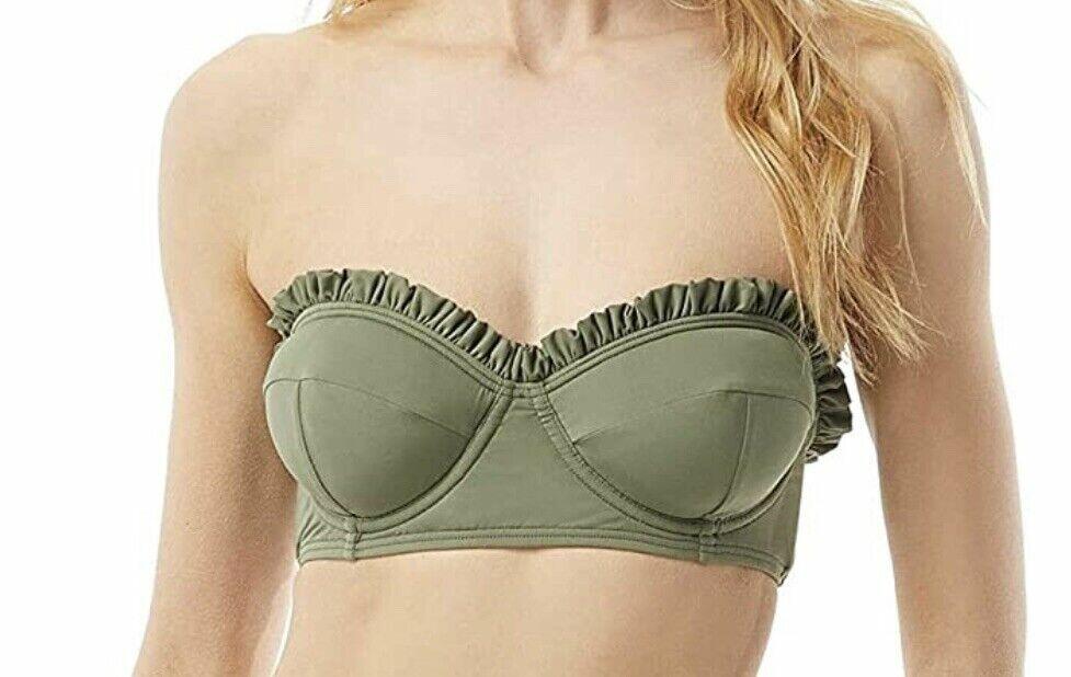 NWT Michael Kors Iconic Solids Ruffled Underwire Bandeau Top Army Green Size M.