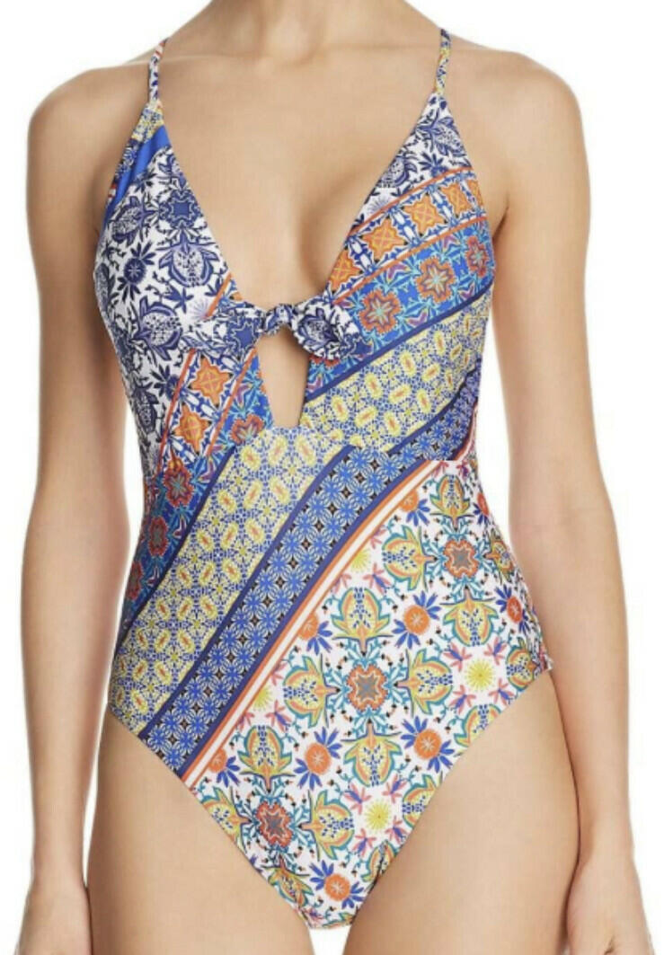 NWT Nanette Lepore Womens Front Keyhole One Piece Swimsuit Multi Size 14
