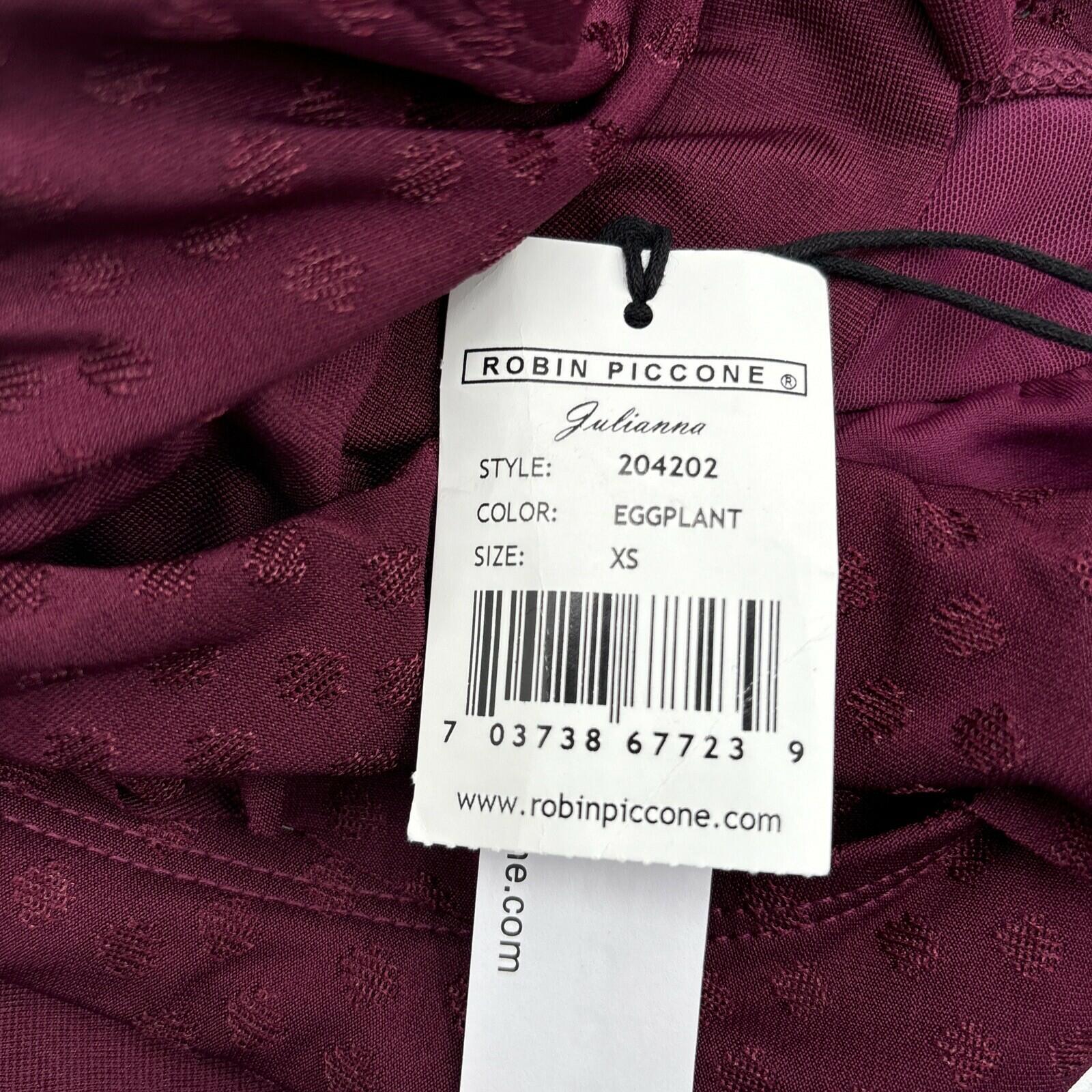 NWT Robin Piccone Women's Julianna Ruffle Trim Bikini Top Eggplant Size XS