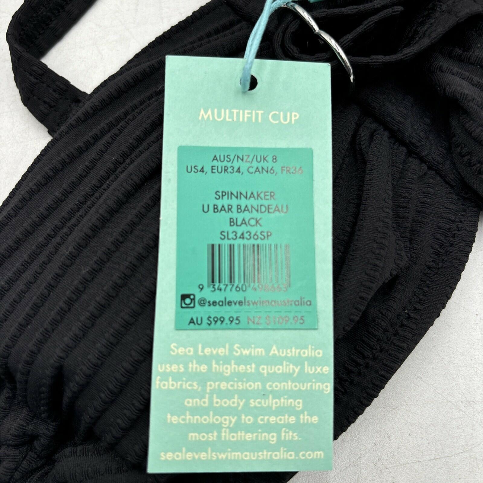 NWT Sea Level Swimwear Womens Spinnaker U Bandeau Top in Black Size 4