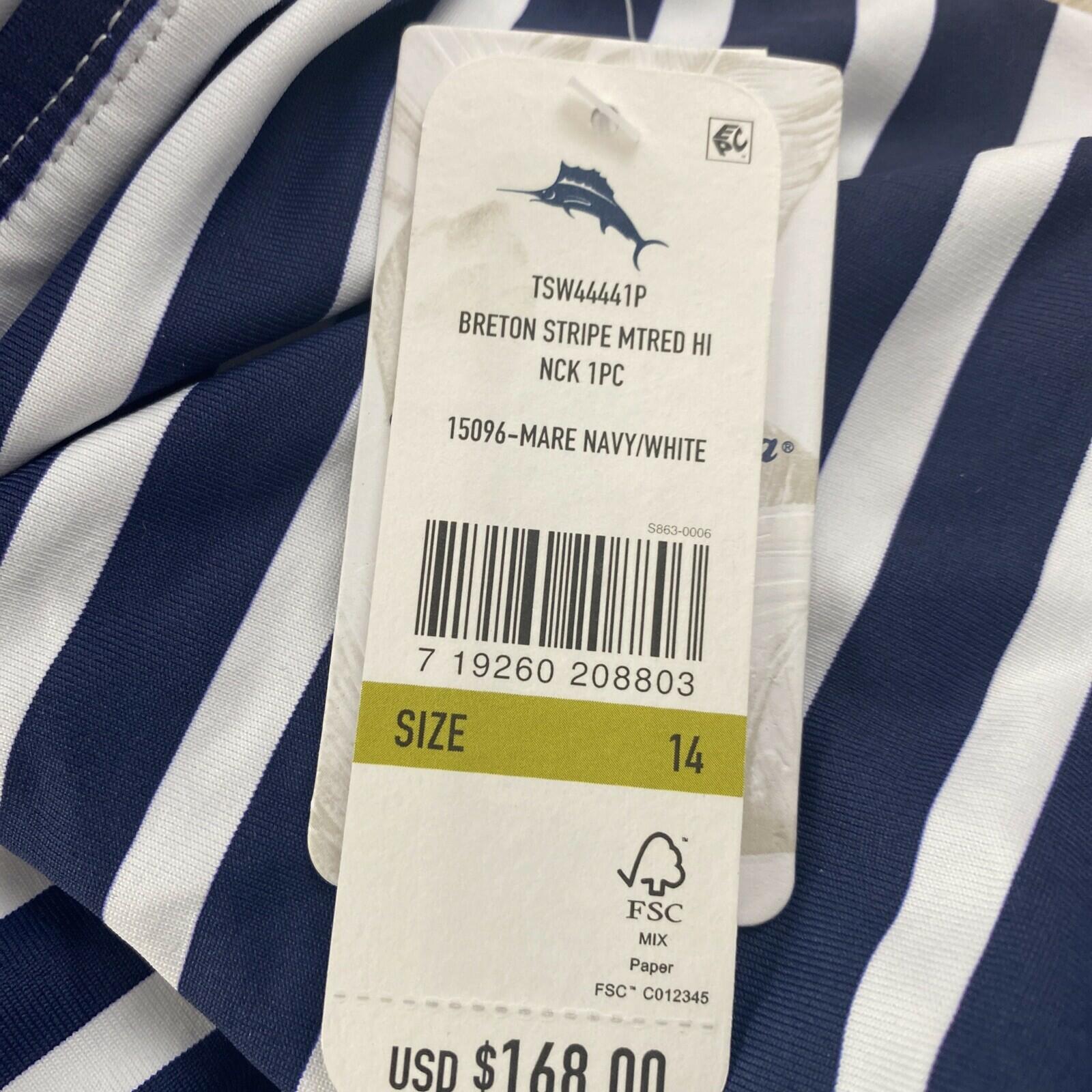 NWT TOMMY BAHAMA Breton Stripe High Neck One Piece Swimsuit Navy Size 14