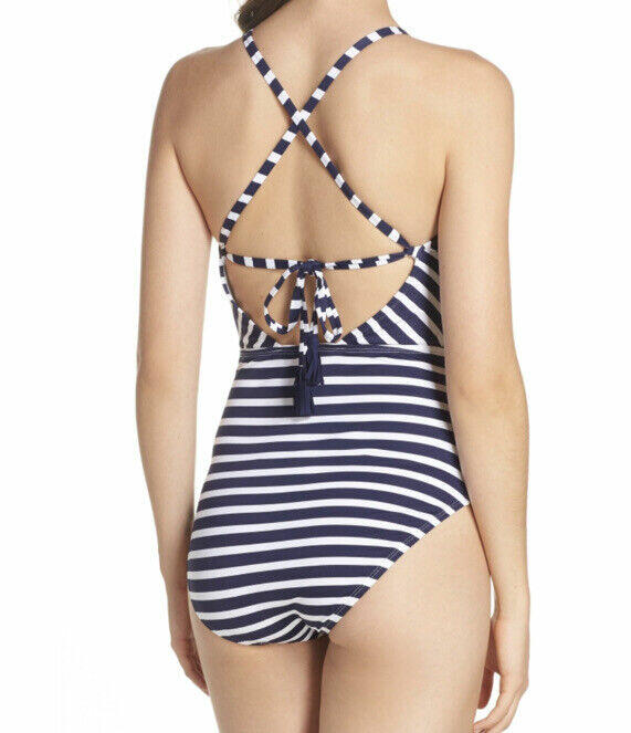 NWT TOMMY BAHAMA Breton Stripe High Neck One Piece Swimsuit Navy Size 4