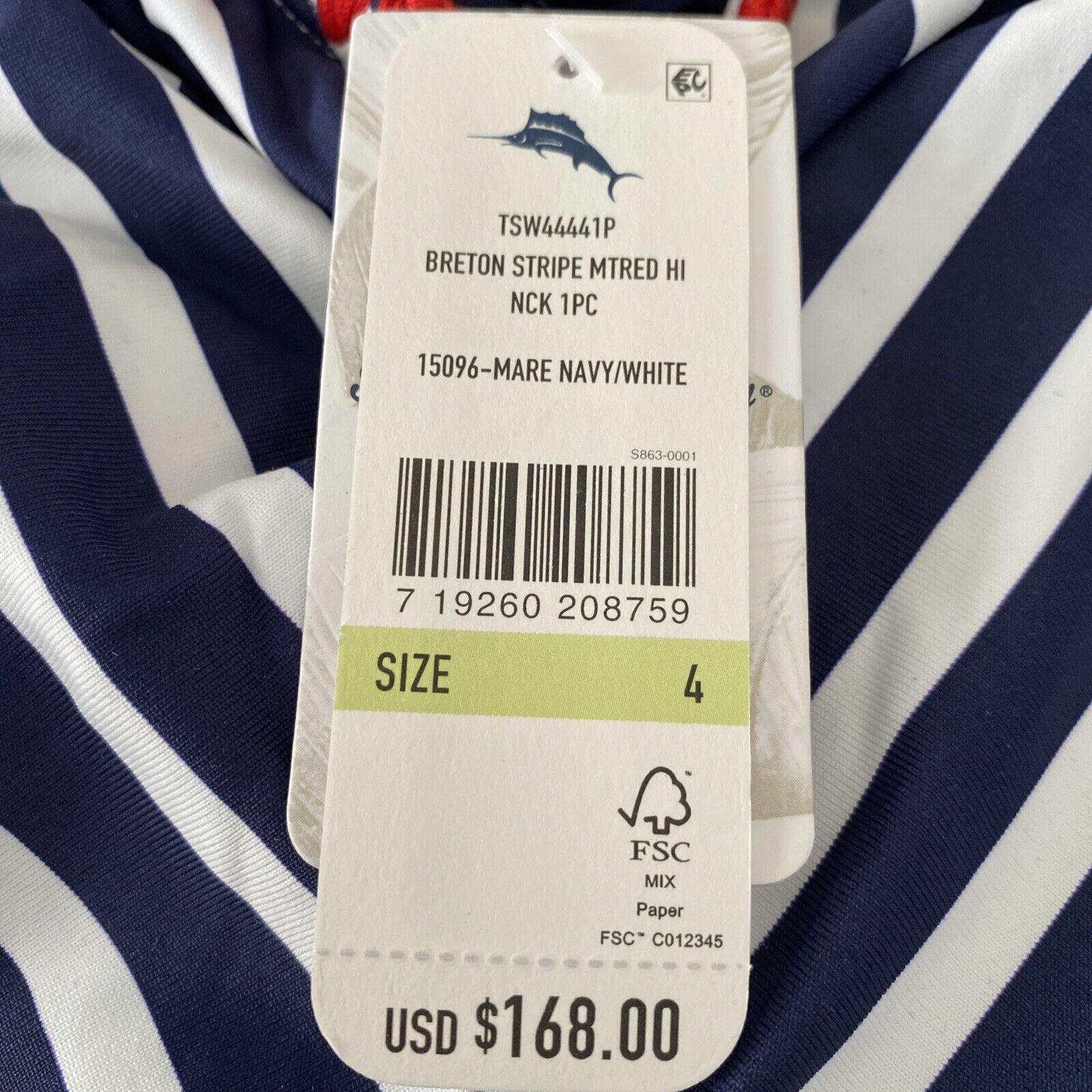 NWT TOMMY BAHAMA Breton Stripe High Neck One Piece Swimsuit Navy Size 4. Condition is "New with tags". Shipped with USPS First Class.