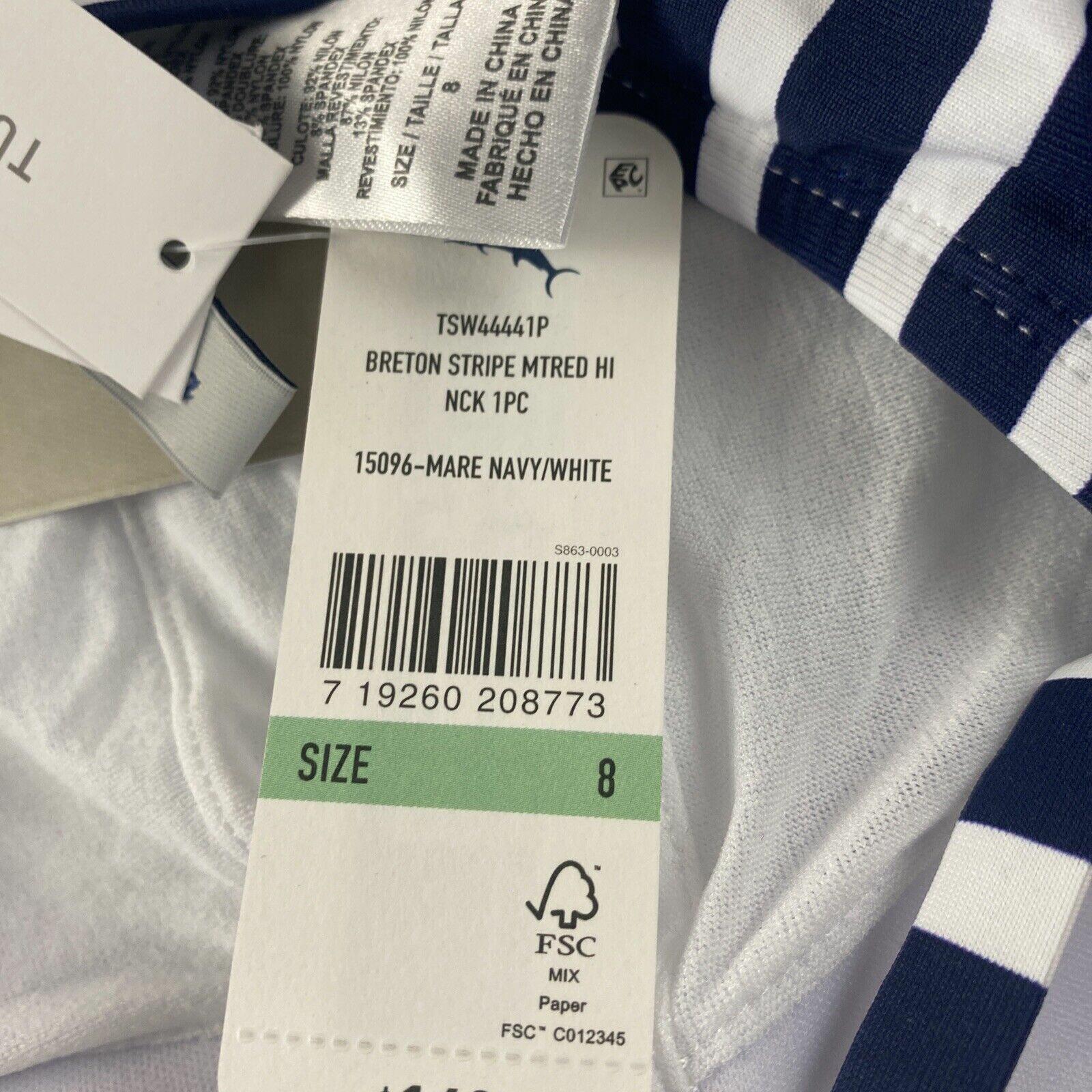 NWT TOMMY BAHAMA Breton Stripe High Neck One Piece Swimsuit Navy Size 8. Condition is "New with tags". Shipped with USPS First Class.