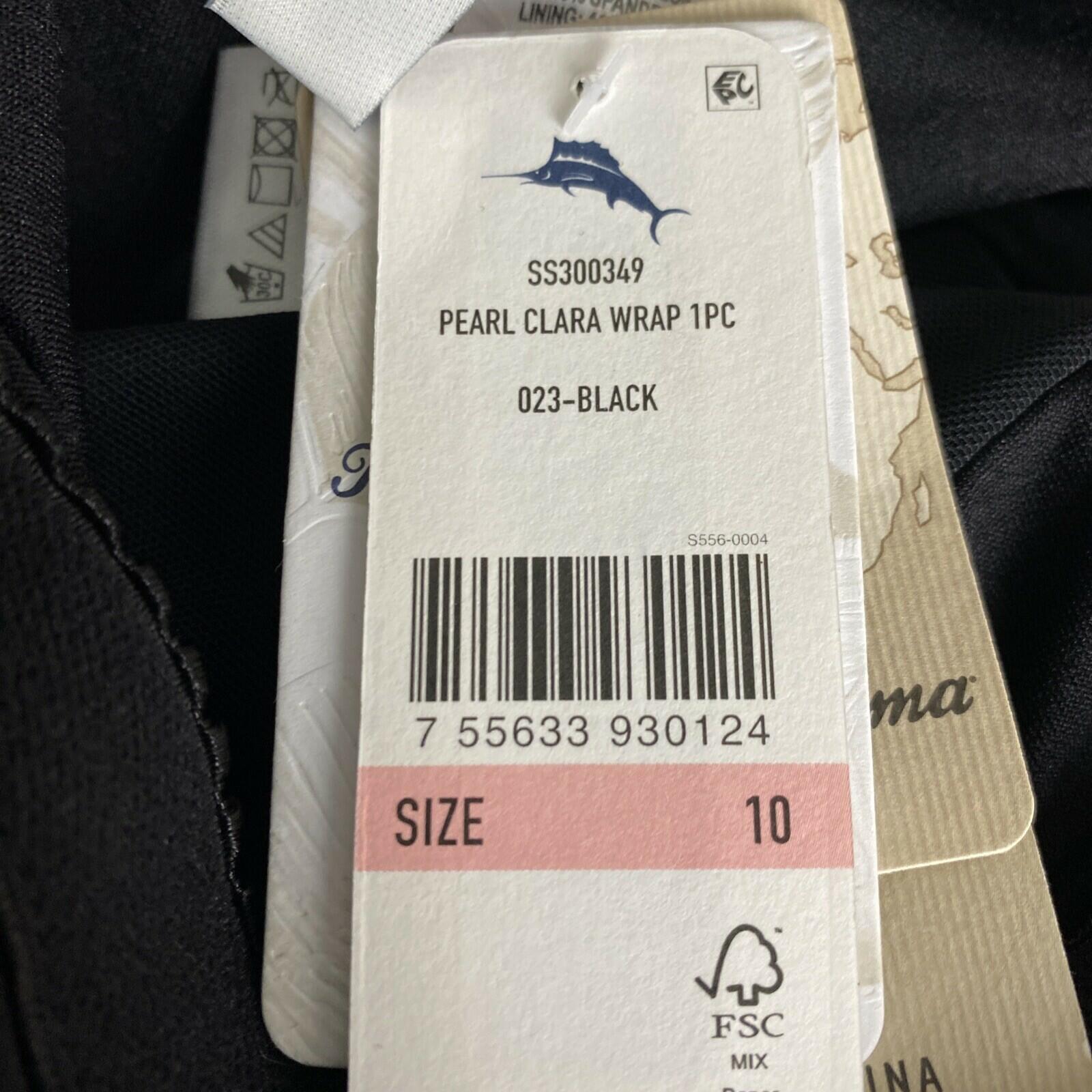 NWT Tommy Bahama Women's Pearl Clara Wrap One-Piece Swimsuit Black Size 10. Condition is New with Tags. Shipped with USPS First Class.