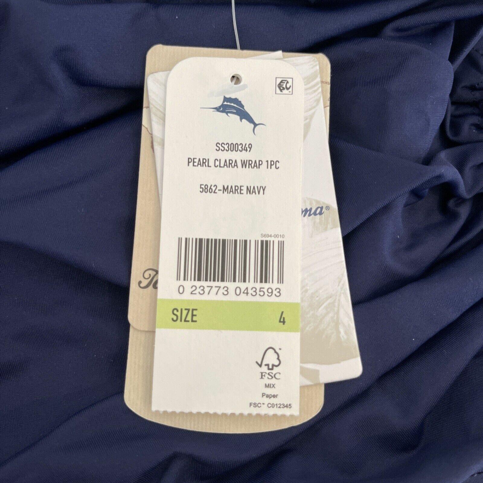 NWT Tommy Bahama Women's Pearl Clara Wrap One-Piece Swimsuit Navy Size 4.