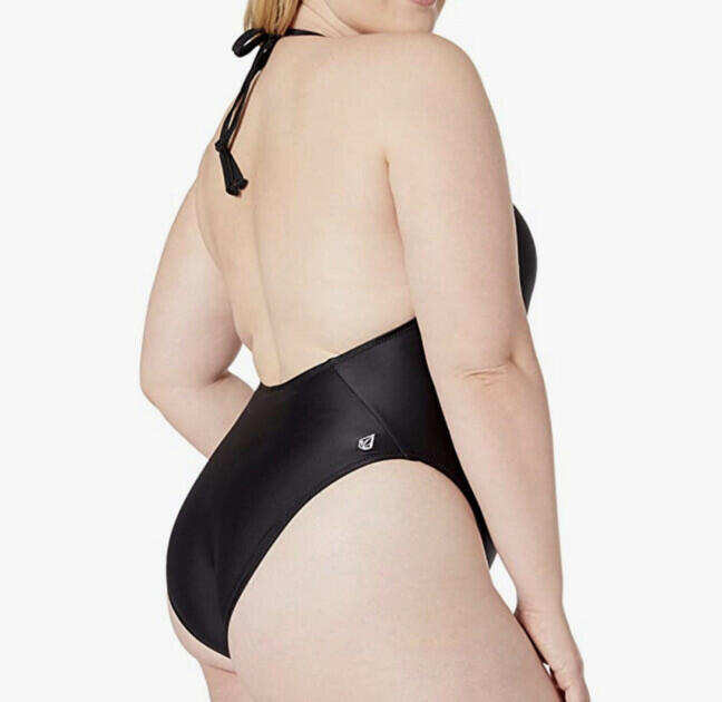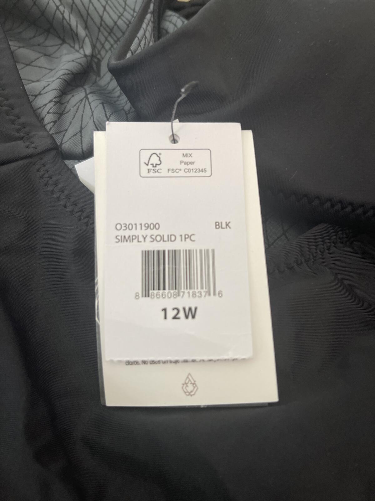 NWT Volcom Women's Simply Solid One Piece Swimsuit, Black Plus Size 12W