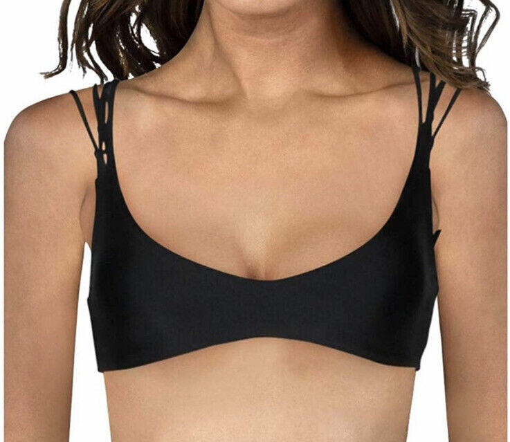 NWT Volcom Women's Simply Solid V Neck Bikini Top, Black Size 16W