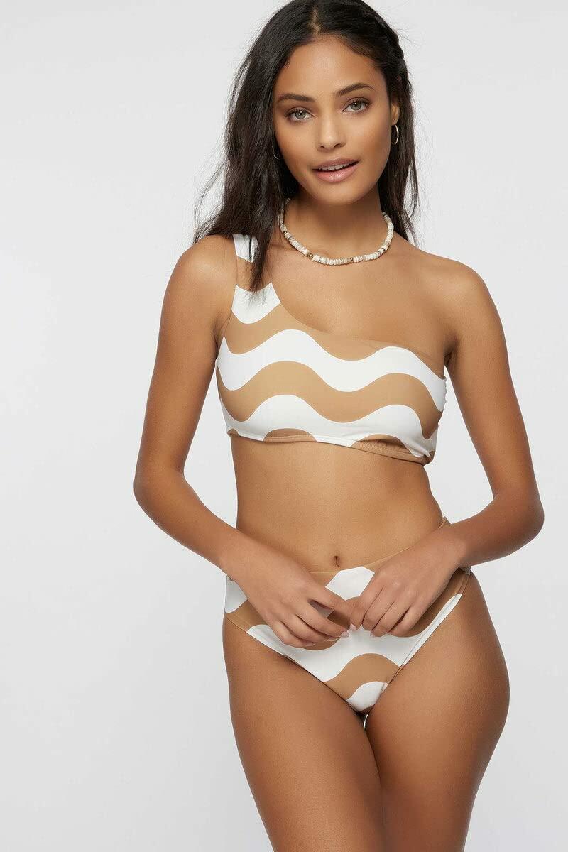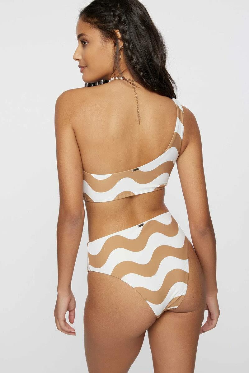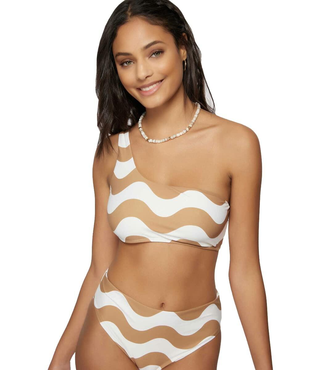 O'NEILL Womens Swim Wavy Stripe One Shoulder Active, Chipmunk, Size XS