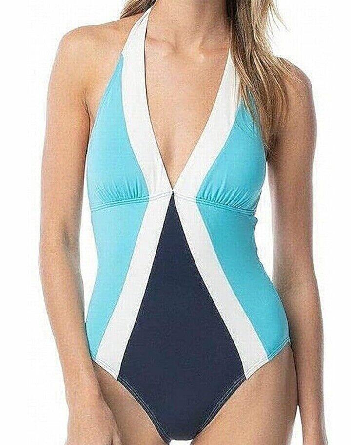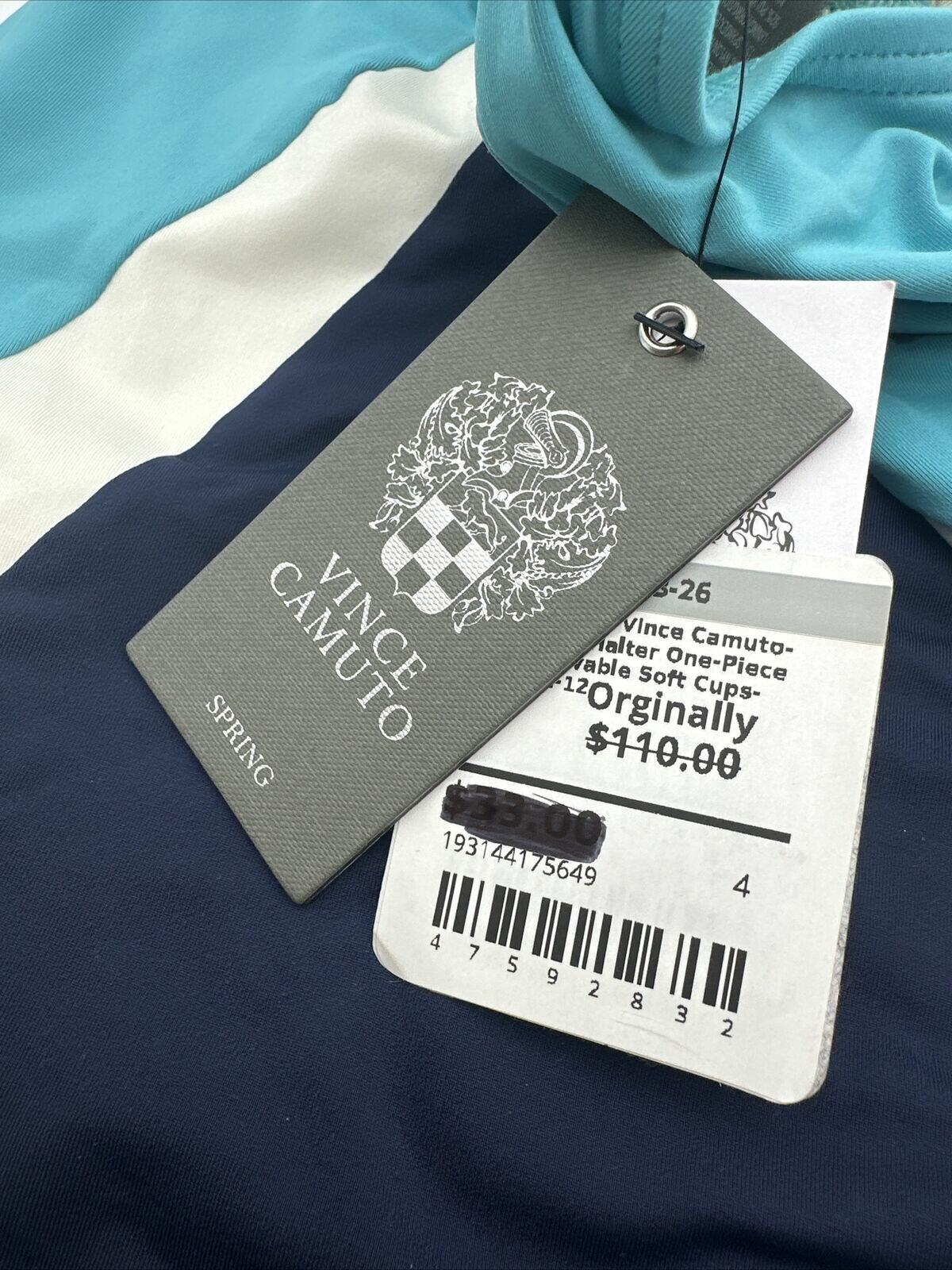 Vince Camuto Color Block Halter One-Piece with Removable Soft Cups Deep Sea 12 - Like New
