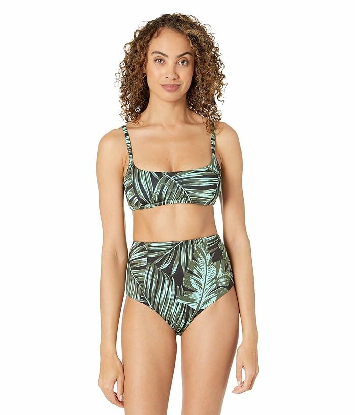 Timeless and classic, the Sanctuary Palmetto Paradise Bralette Bikini Top embodies carefree bi-coastal aesthetic, California style with edgy East Coast fashion. Comfortable and supportive with no wires. Removable Soft Cups and J hook hardware closure . Botanical print throughout. Adjustable Waist. 85% recycled polyester, 15% spandex. Hand wash with cold water, do not bleach. Line dry but not in direct sunlight. Imported. Measurements: Length: 7 in Sleeve Length: 10 in Product measurements were taken using size SM. Please note that measurements may vary by size. If you're not fully satisfied with your purchase, you are welcome to return any unworn and unwashed items with tags intact and original packaging included.