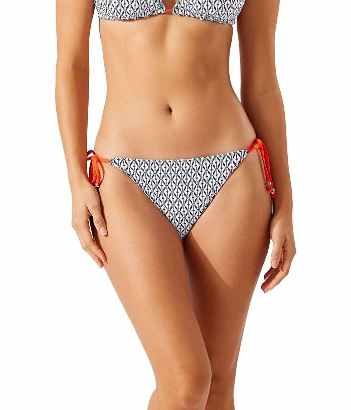 Planning a holiday by the beach? Don't forget to take with you the Tommy Bahama Island Cays Ikat Reversible String, a comfy and bold swimwear to enhance those curves. Slim fit. Low rise and medium coverage. Adjustable side ties. Allover printed design. Tie closure. 96% nylon, 4% spandex. Hand wash, line dry. Imported. Measurements: Side seam: 3/8 in. If you're not fully satisfied with your purchase, you are welcome to return any unworn and unwashed items with tags intact and original packaging included.