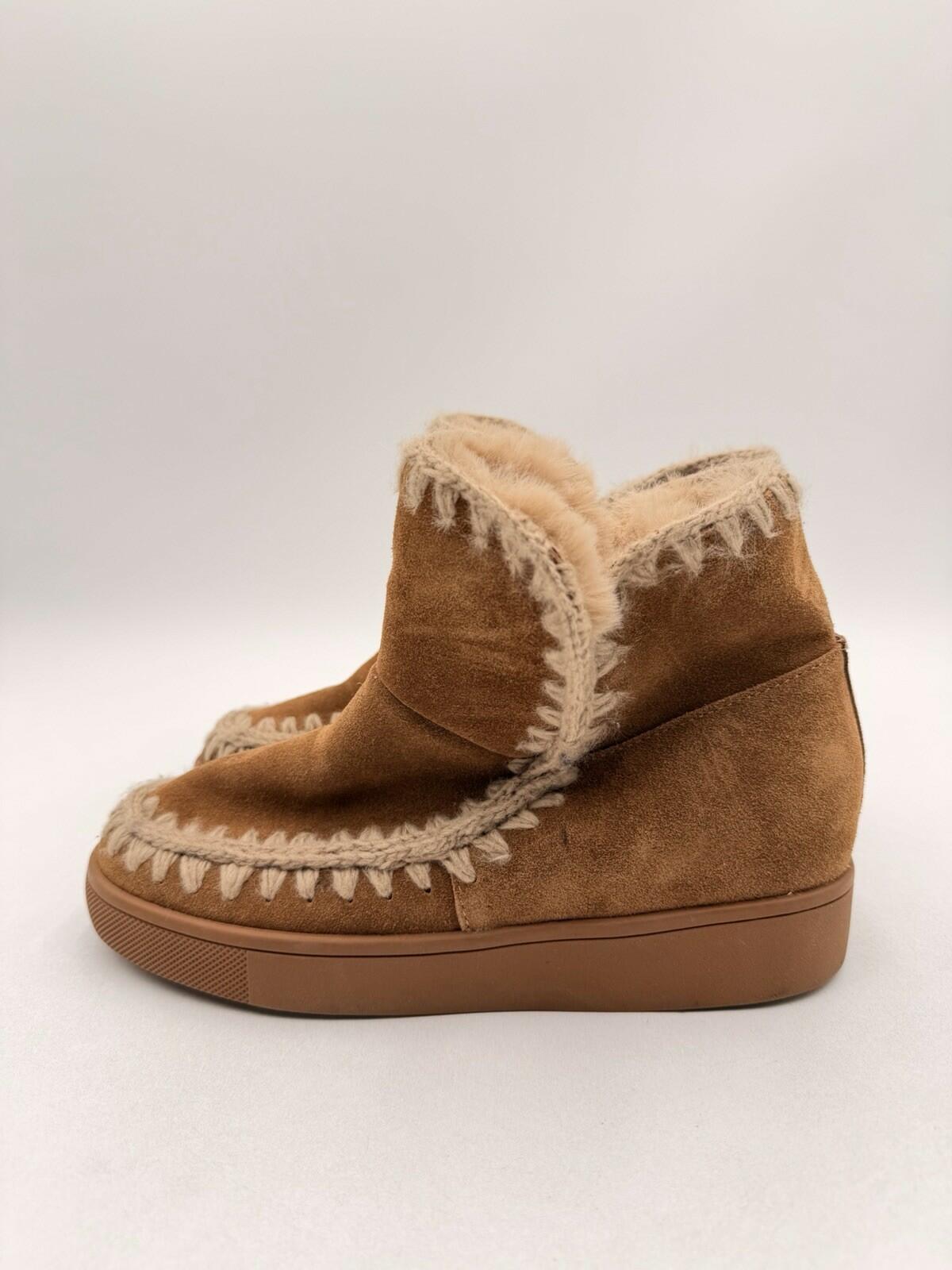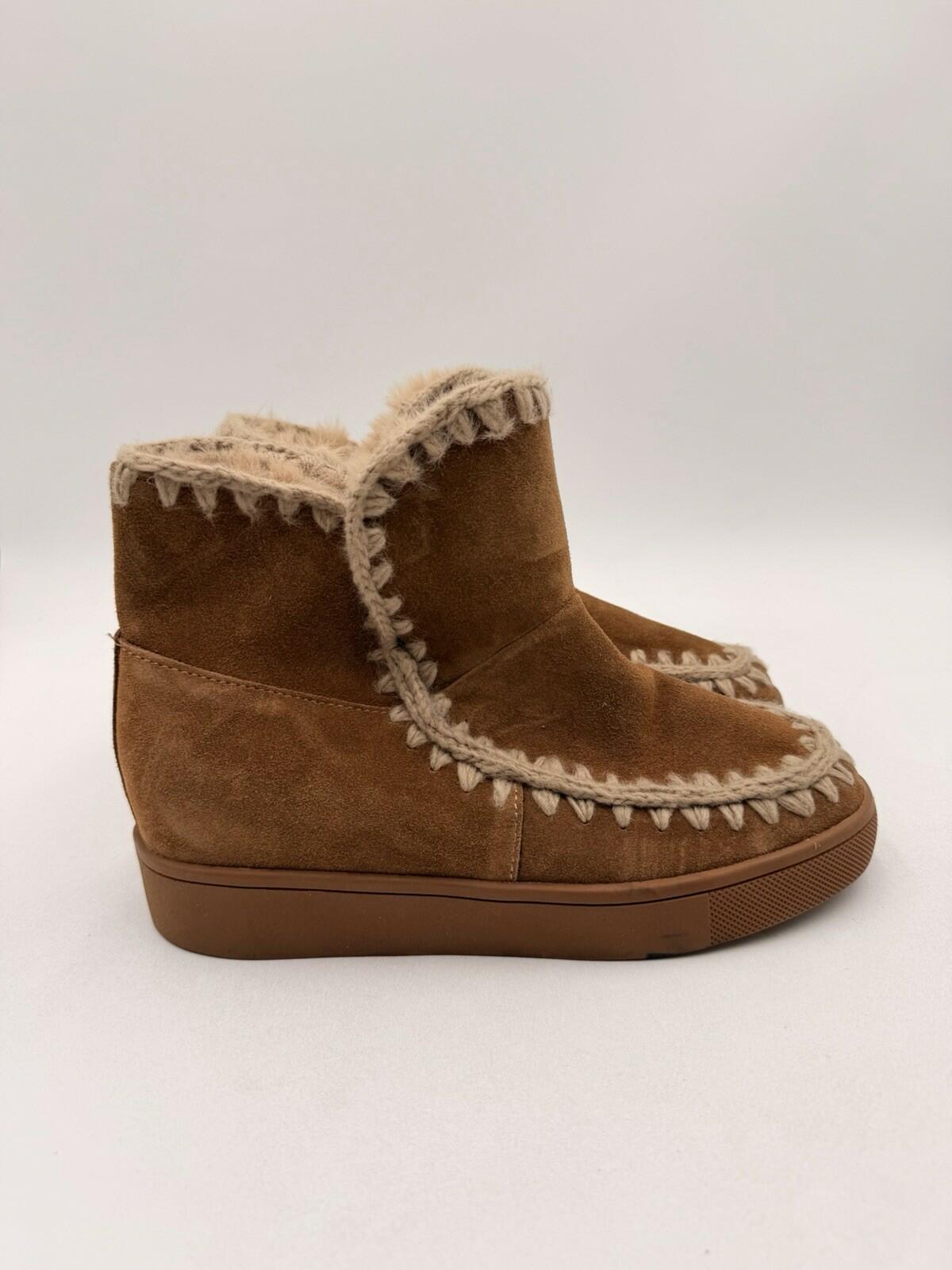 BLONDO Arielle Waterproof Faux-Fur & Suede Mocassin Booties Camel Cognac Size 8 - Very Good
