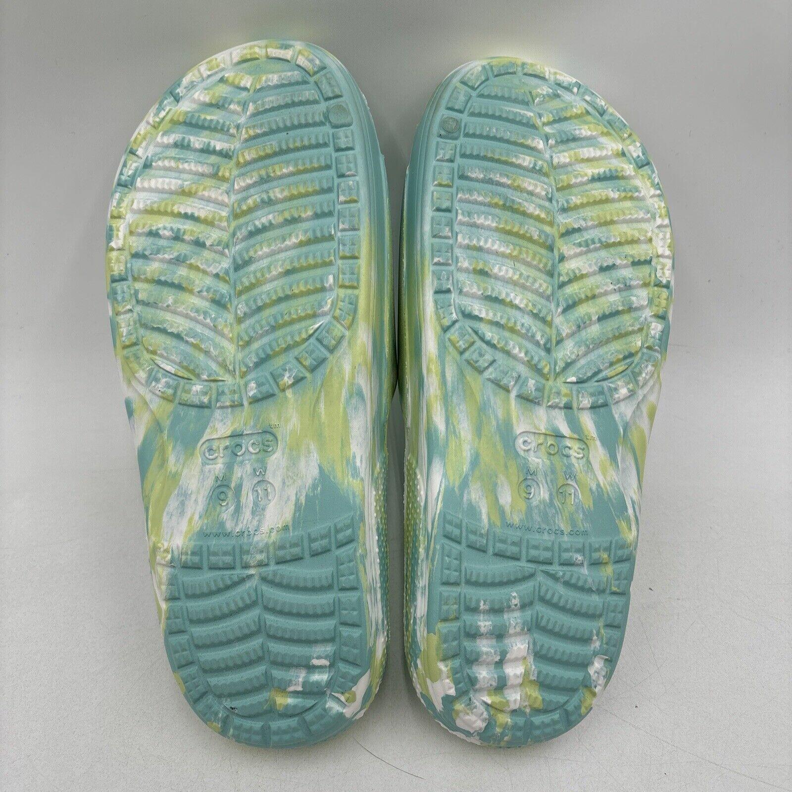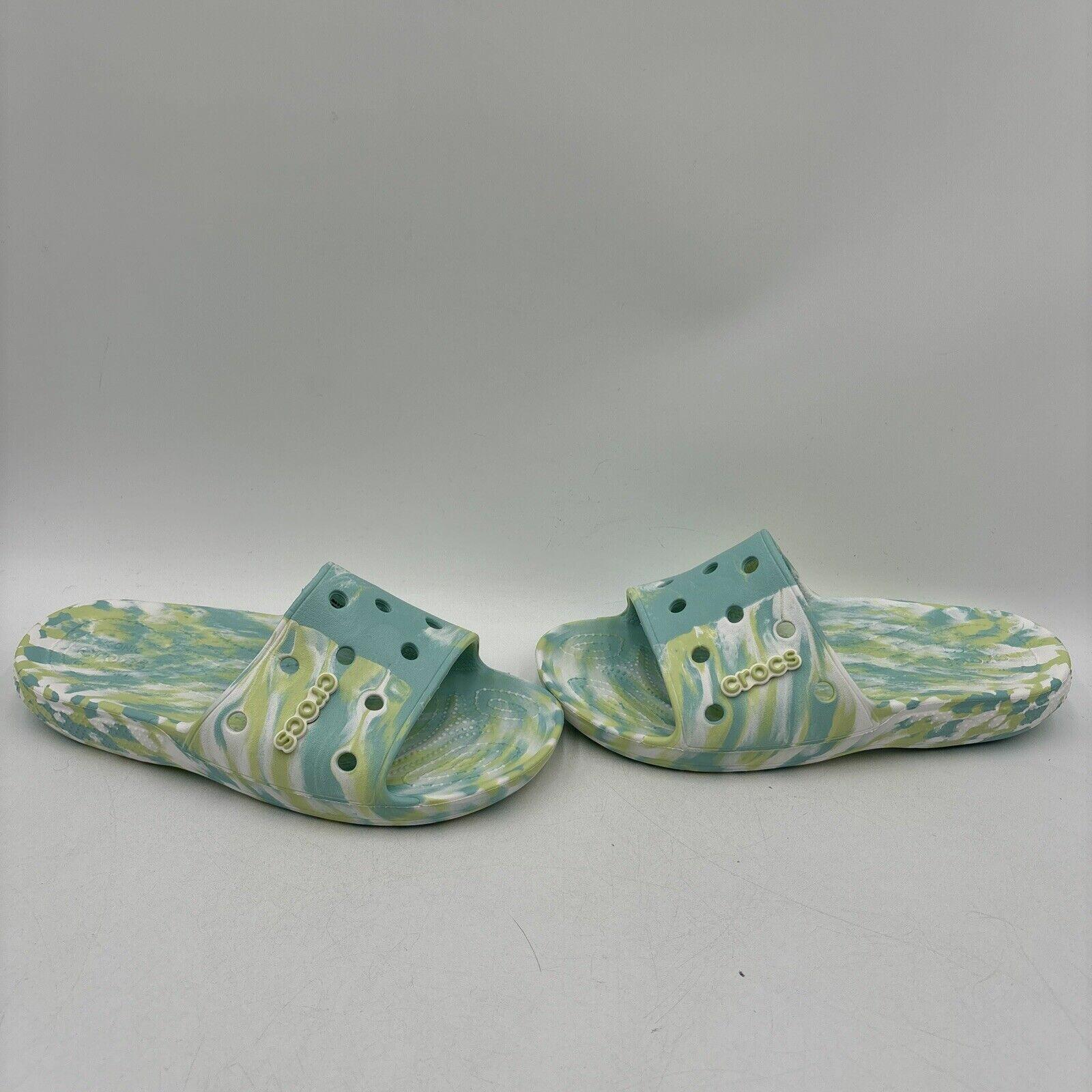 Crocs Classic Blue Marbled Synthetic Open Toe Slide Sandals Mens 9, Women 11 - Very Good