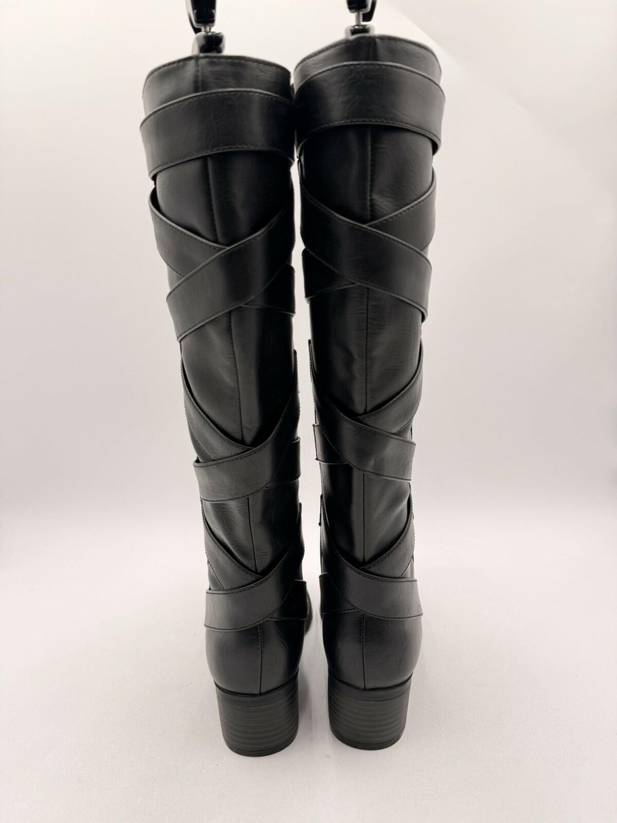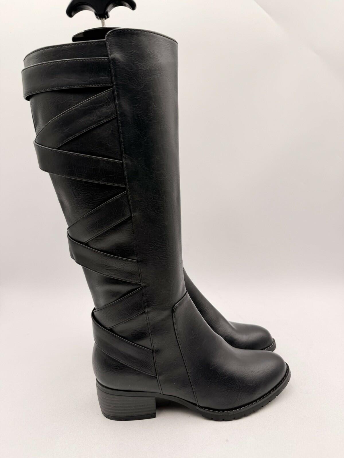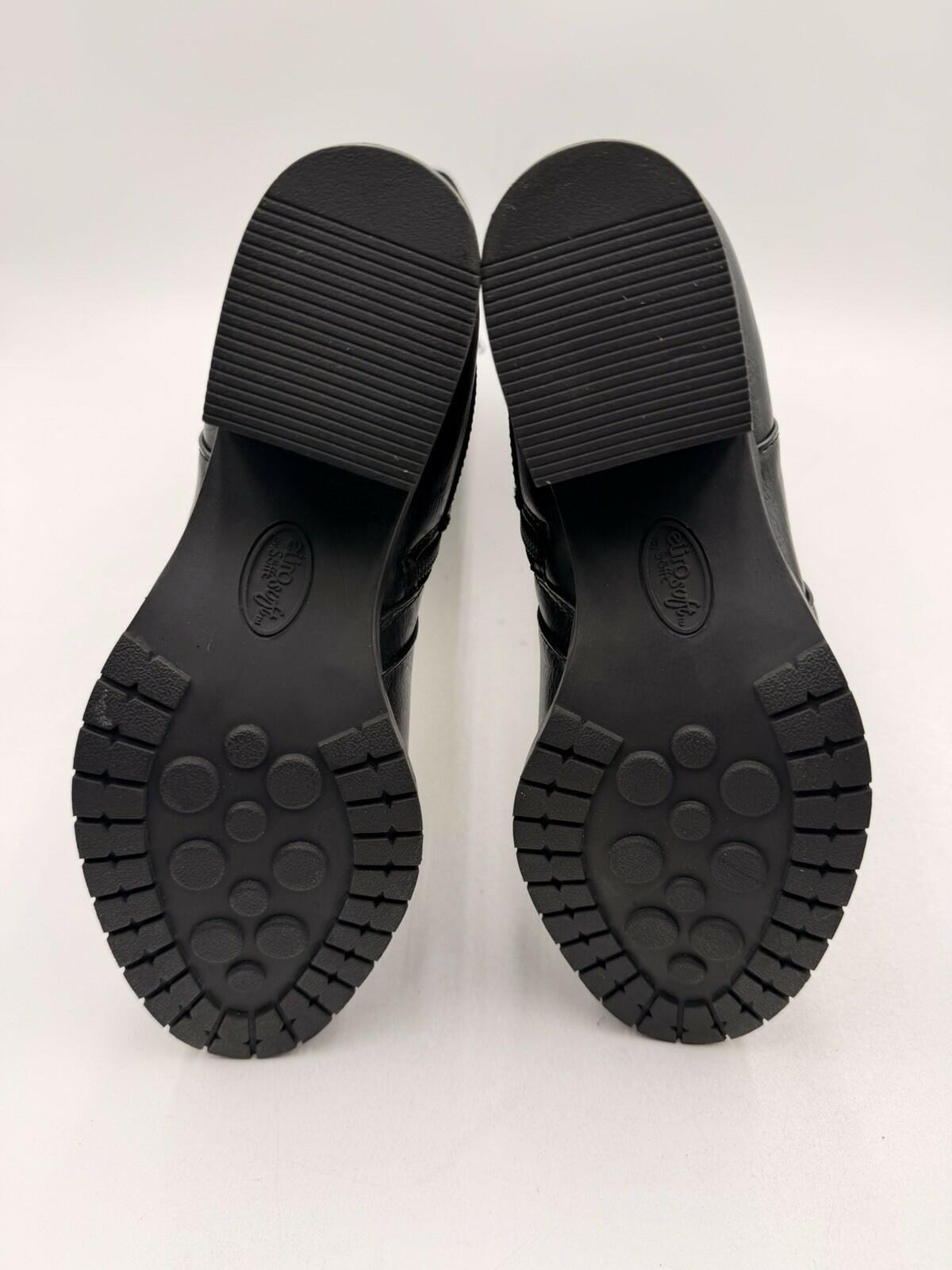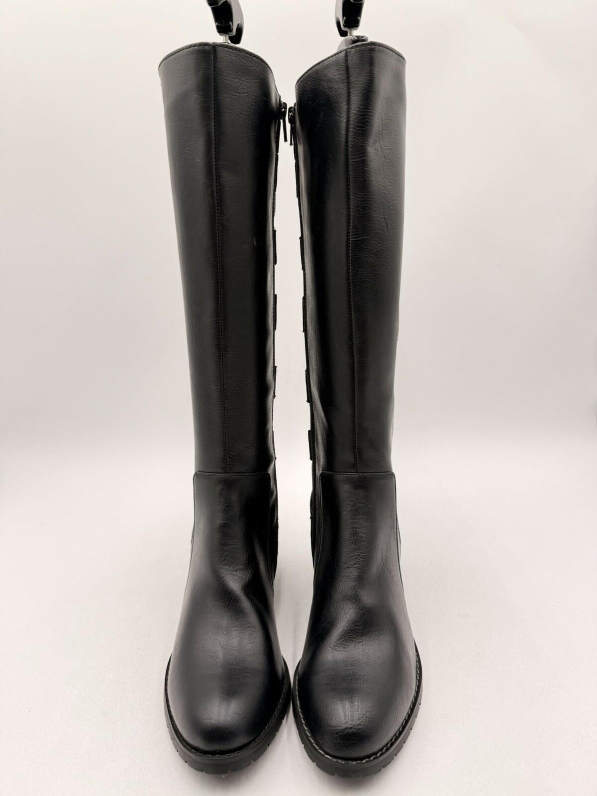 The EuroSoft MAYNARD Back Faux Leather Side Zip Block Heel Knee High Boots in size 7M are fashionable and versatile boots perfect for casual occasions. Featuring a round toe, zip closure, and a block heel, these boots offer both comfort and style. The knee-high design and solid black color make them a standout addition to any wardrobe. Made with faux leather upper and rubber outsole, these boots by Sfft are a trendy and practical choice for women looking for a comfortable and durable footwear option.