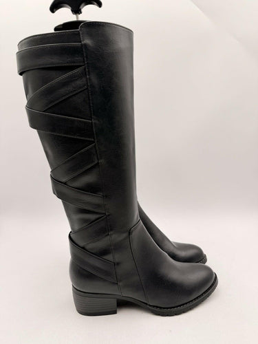 EuroSoft MAYNARD Back Faux Leather Side Zip Block Heel Knee High Boots Size 7M - Very Good