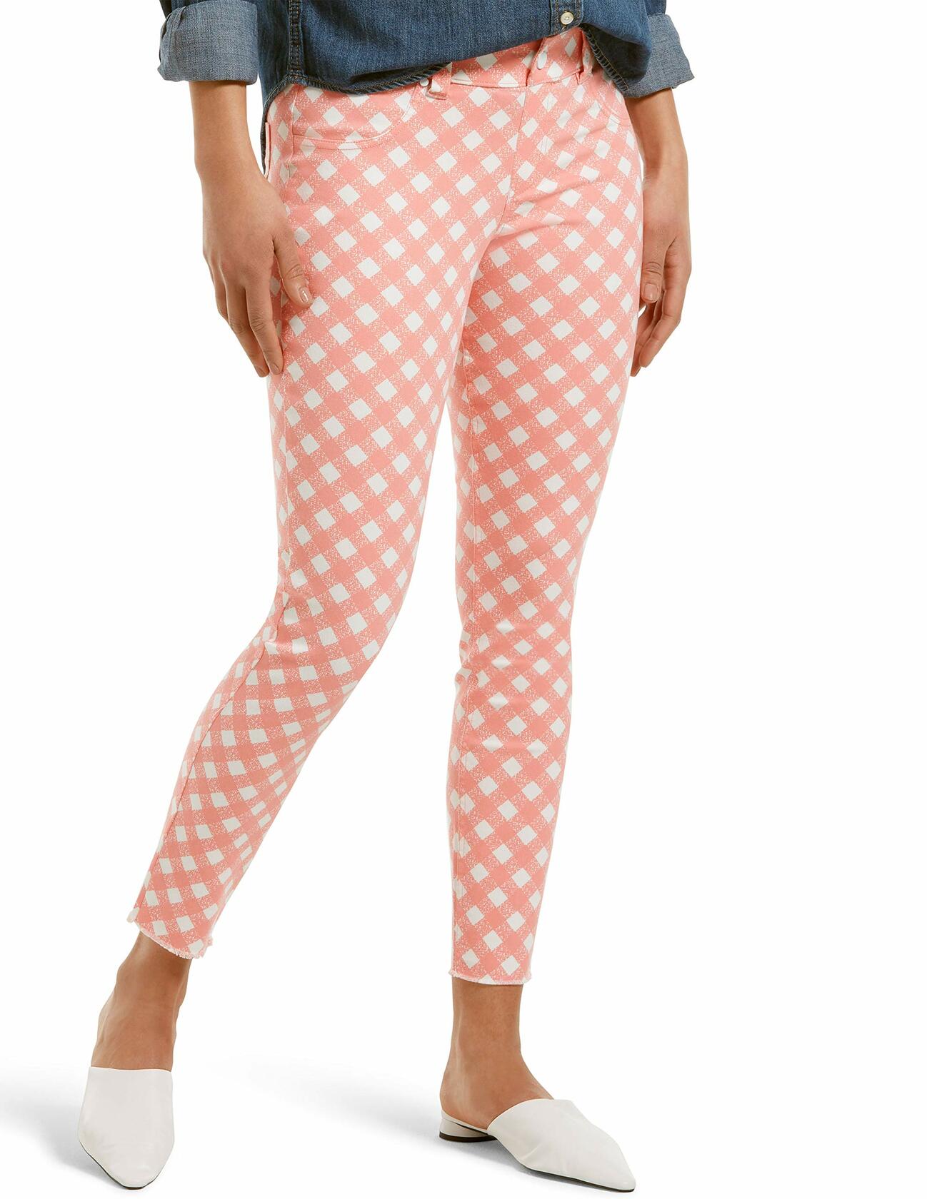 HUE Women's Ultra Soft Denim Jean Capri Leggings, Tutti Frutti-Gingham, Medium