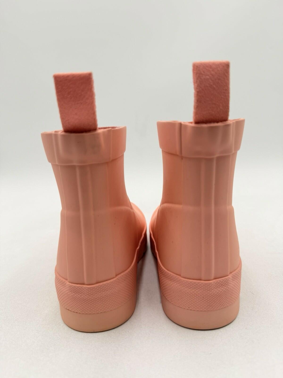 One boot is slightly darker than the otherThe Hunter Play Rain Boot in Salmon Pink is a versatile and stylish unisex kids' shoe perfect for all seasons. With a round toe shape and ankle shaft style, these boots are both comfortable and practical for everyday wear. The waterproof and lightweight design, along with the rubber outsole, make them ideal for outdoor activities like walking and fishing. The classic Hunter logo adds a touch of flair to this durable and practical rain boot. Ideal for travel or casual occasions, these boots are a must-have for any young adventure seeker.
