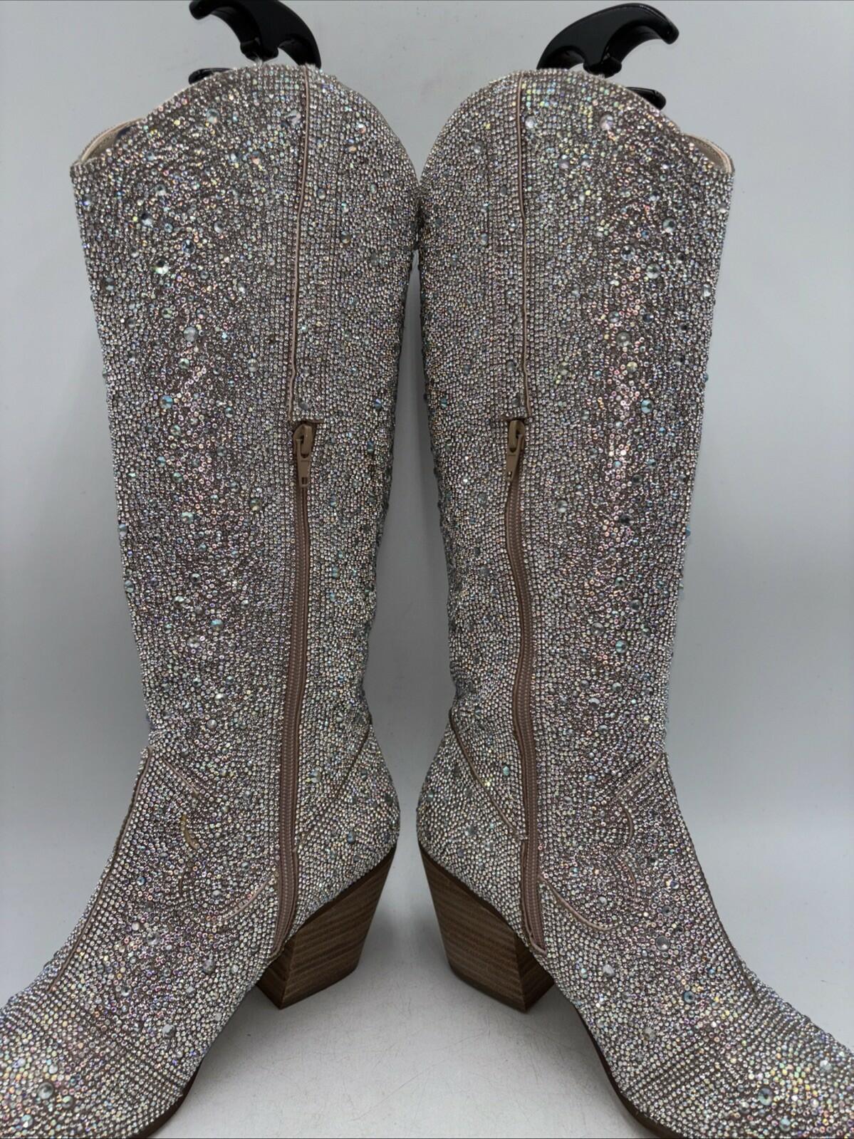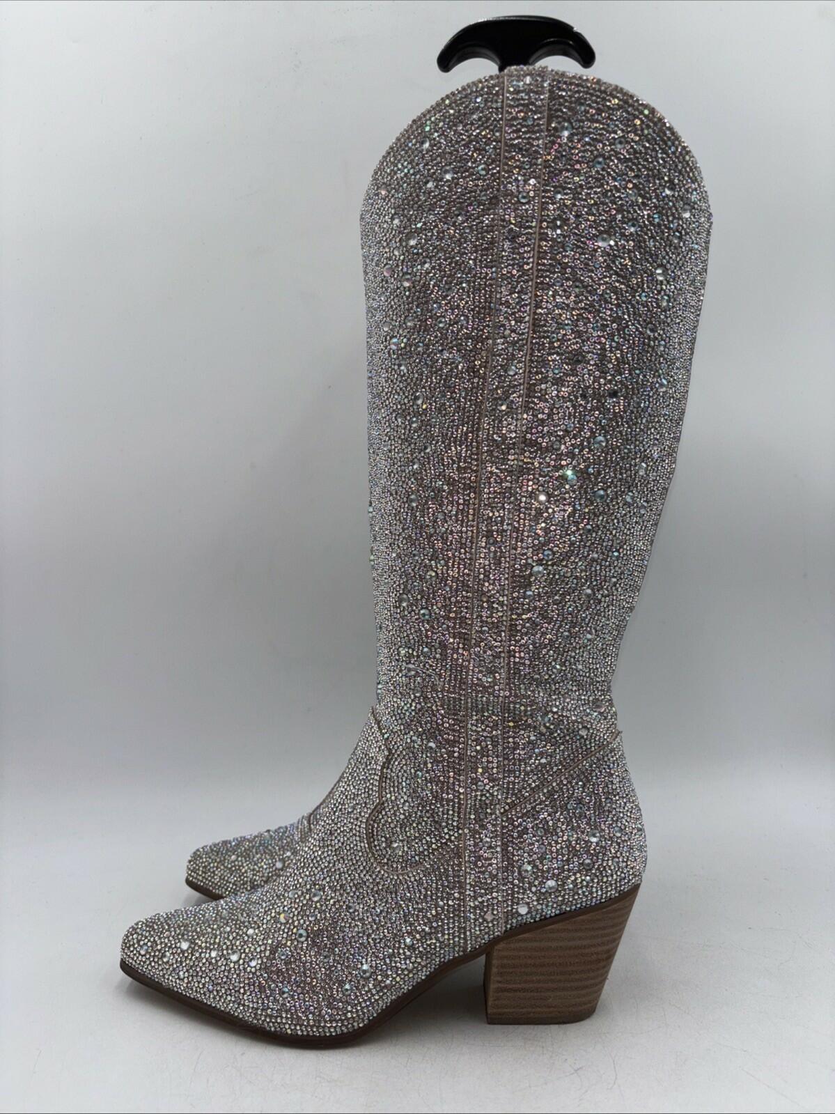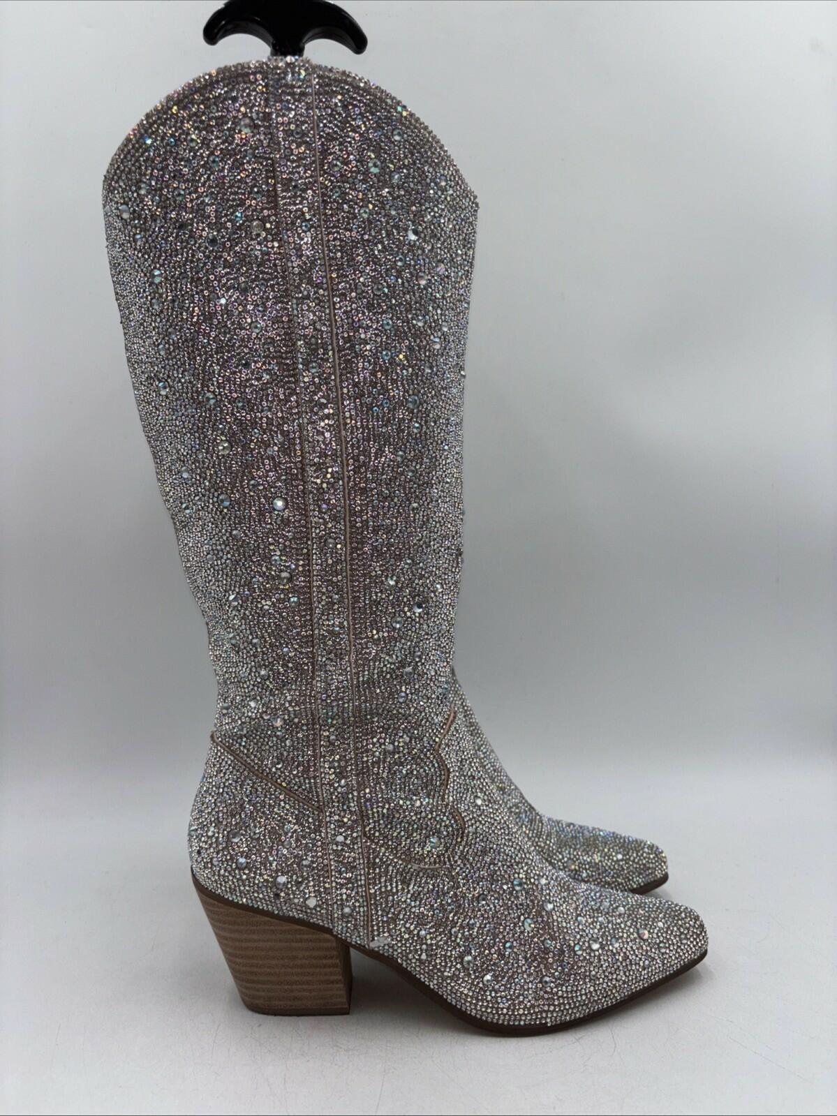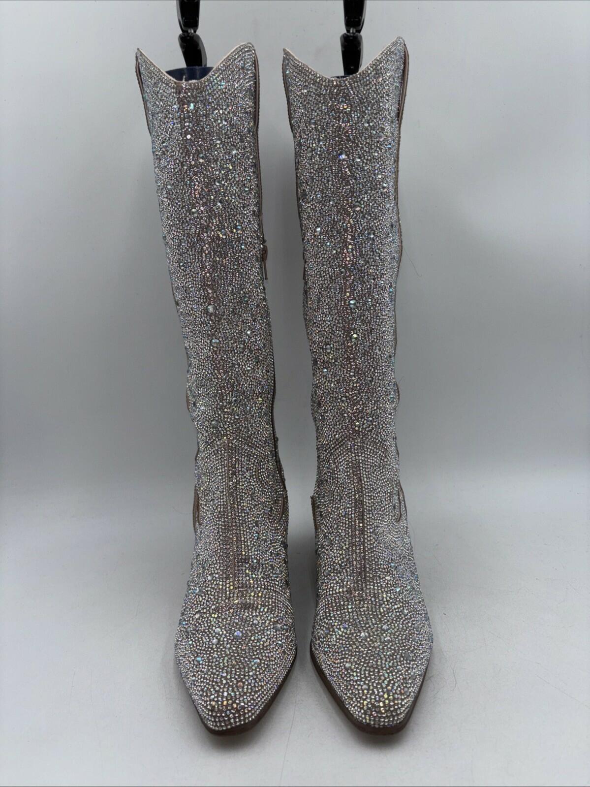 Matisse Nashville Rhinestone Pointed Toe Cowboy Womens Silver Size 9.5 M - Very Good