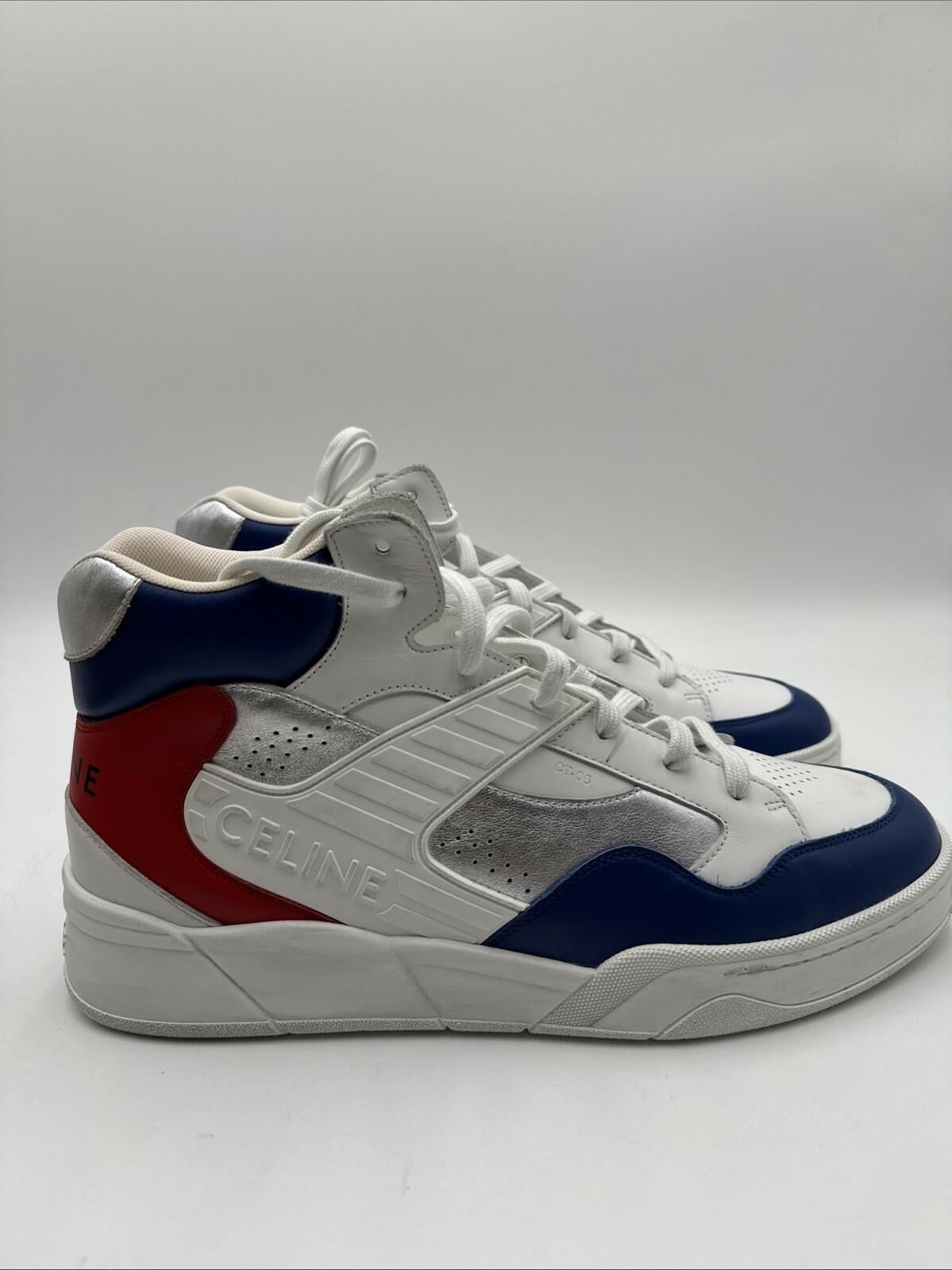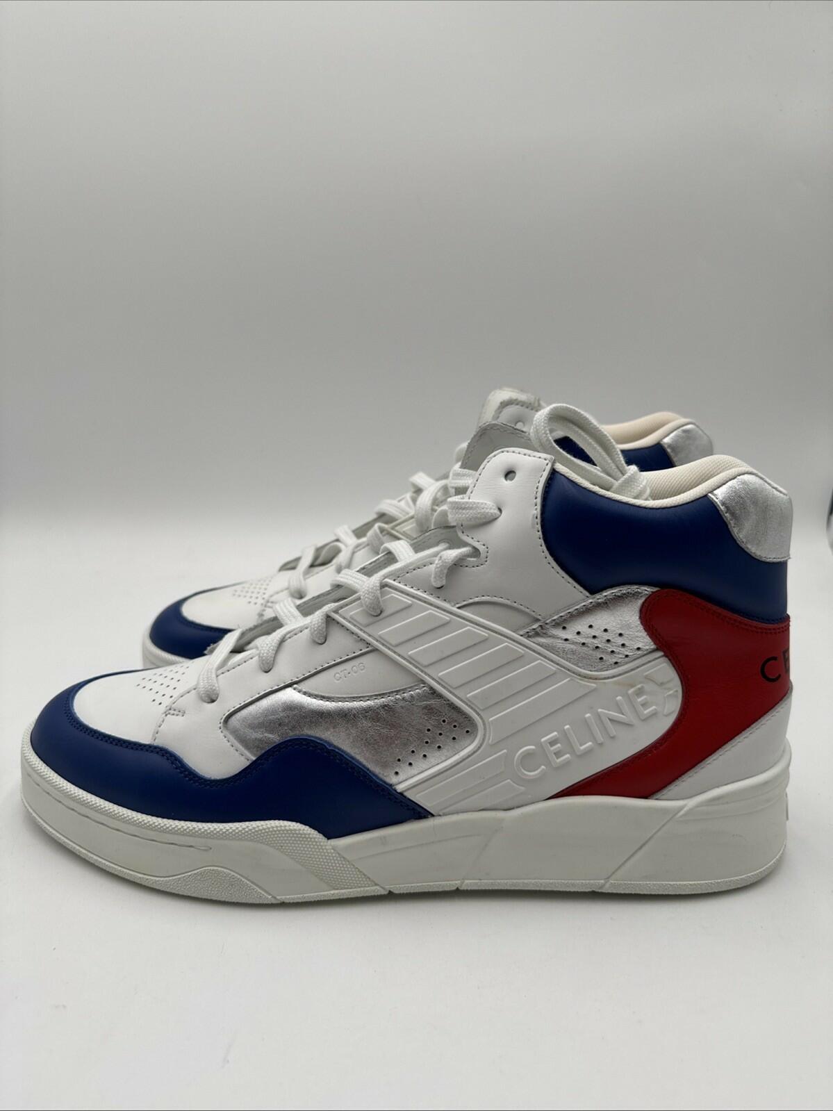 Men CELINE Ct-06 Leather High-top Sneaker Color White / Red / Blue Size 46 - Very Good