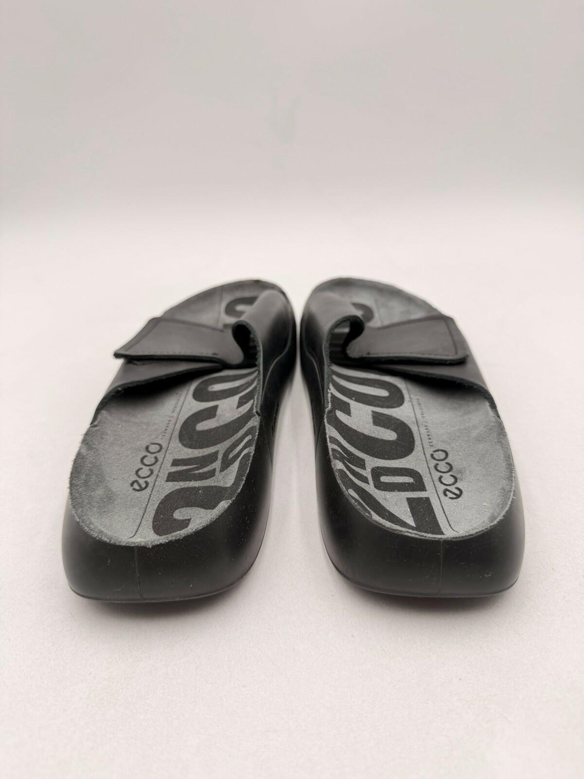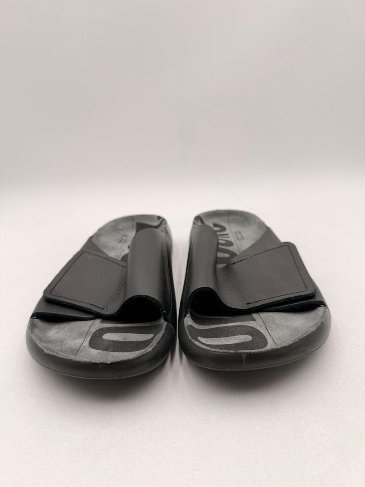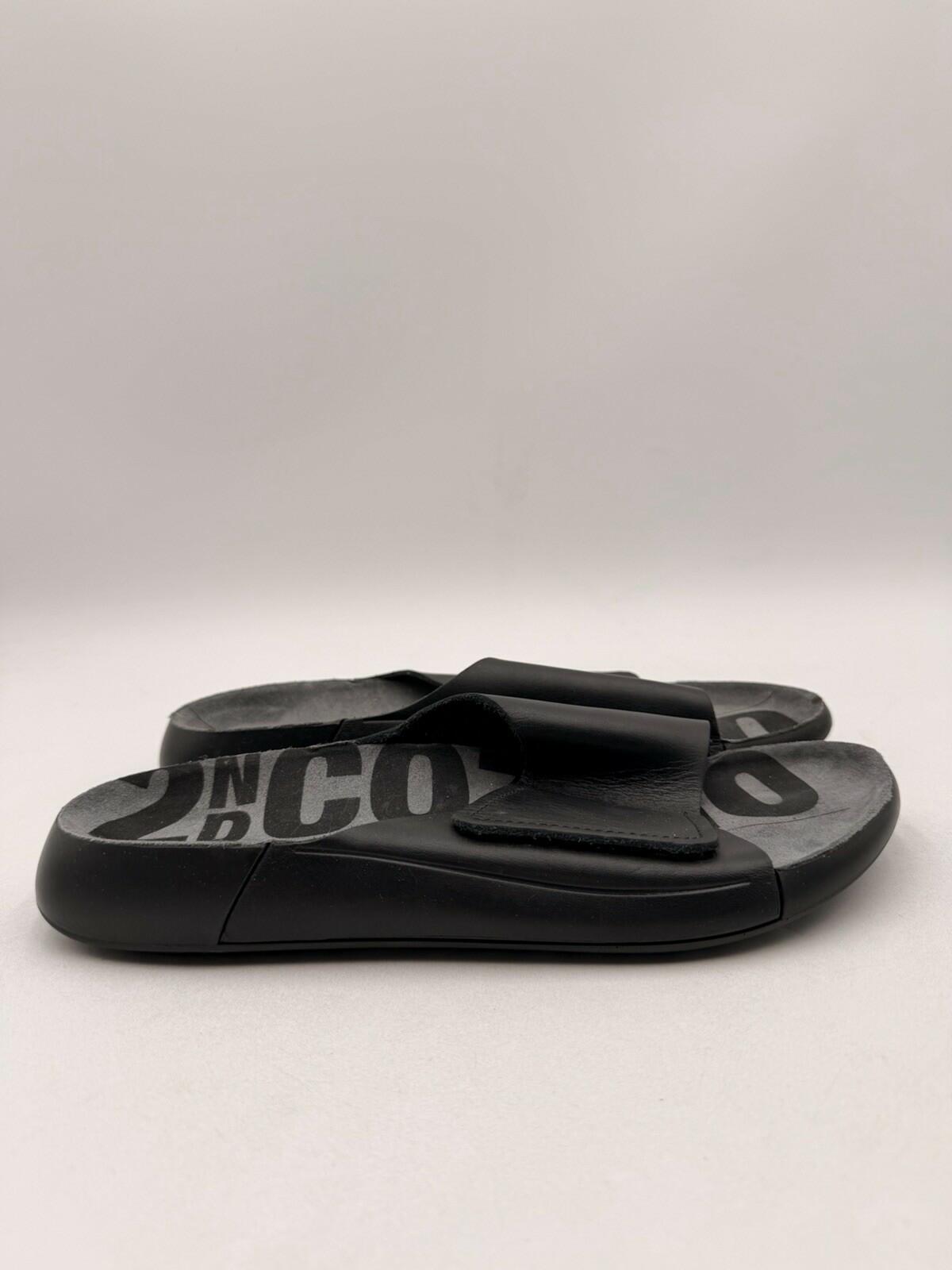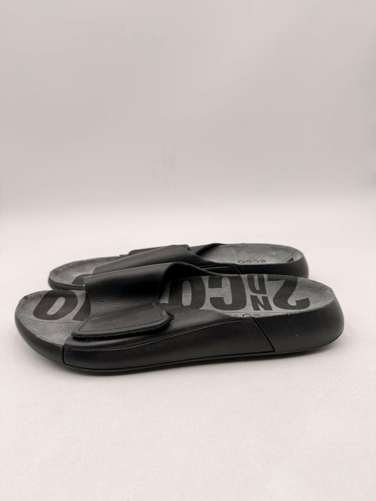 Men Ecco 2nd Cozmo One Band Black Leather Slide On Sandals Size 11-11.5 - Very Good