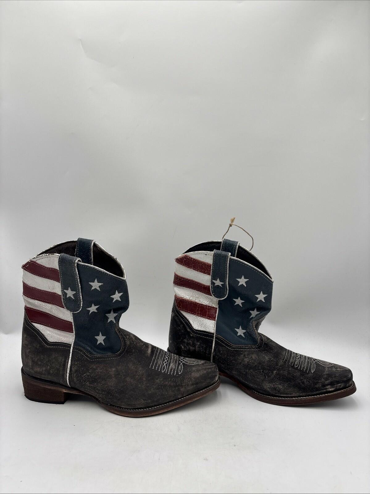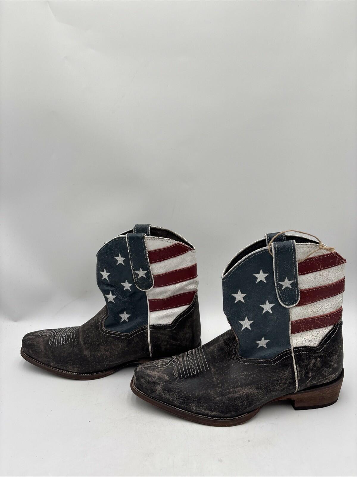 Roper Women's American Beauty Shorty Boots Grey/White/Red Size 11 - Very Good