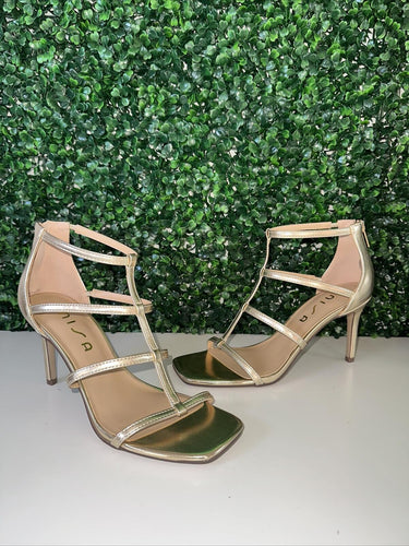 Elevate your shoe game with these stunning Unisa Womens Fennie Sandals in gold. The high heel style and 3.50-inch heel height make them perfect for any casual occasion. The Synthetic upper material and man-made outsole provide durability and comfort.These sandals are great for any woman looking for metal-themed sandals that are both stylish and comfortable. They are imported and come without a box, making them perfect for wearing right away. Get your hands on these Unisa Womens Fennie Sandals today!