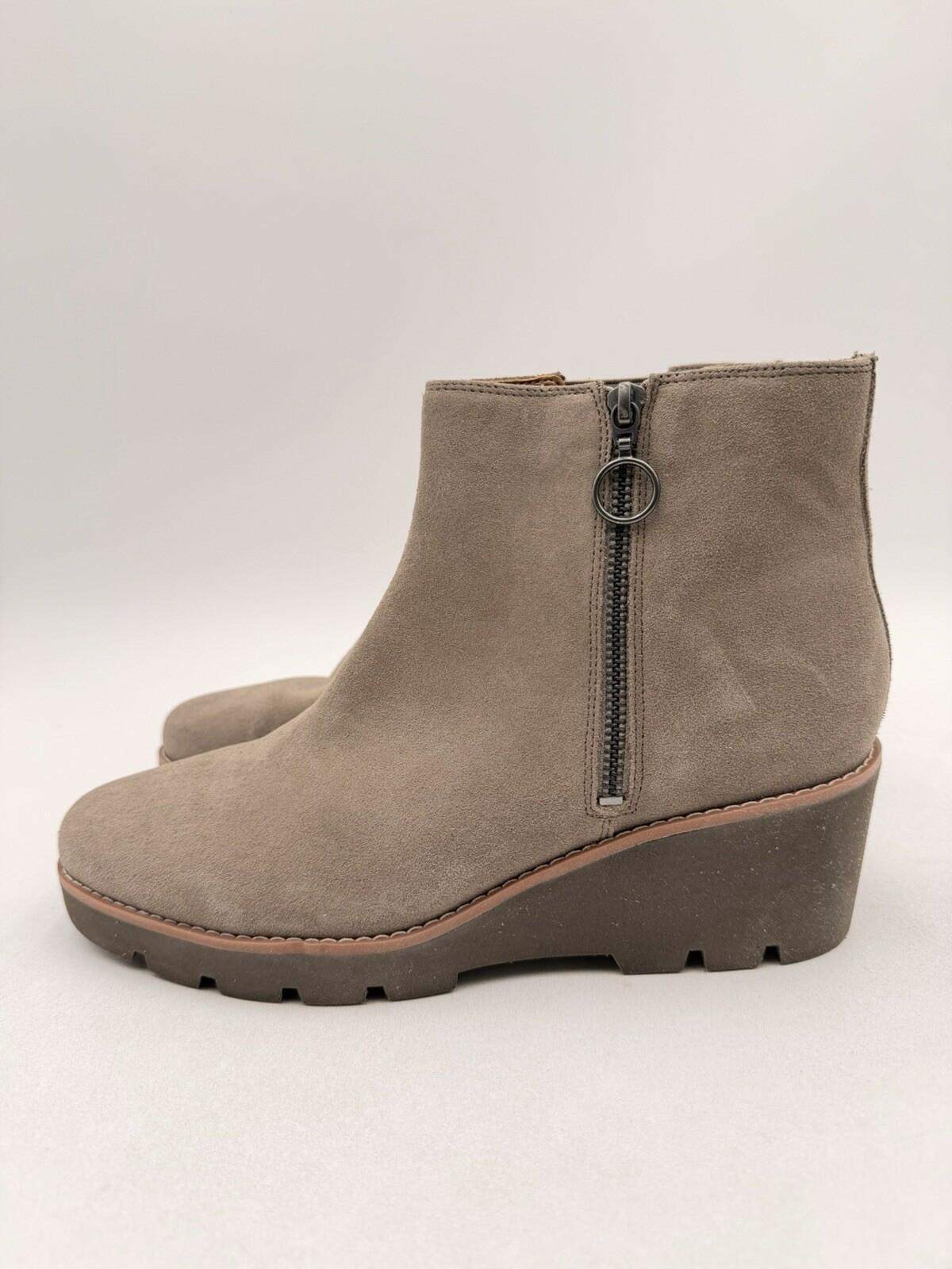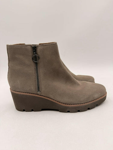 Vionic Hazal Water Repellent Ankle Boots Zip Gray Suede Wedge Size 9.5M - Very Good