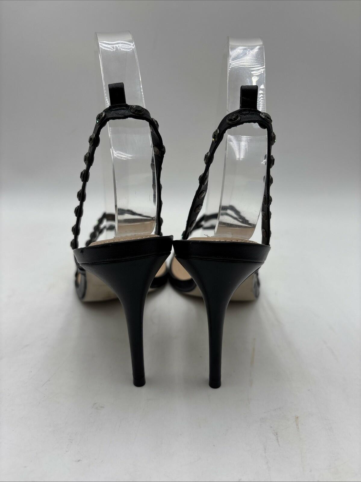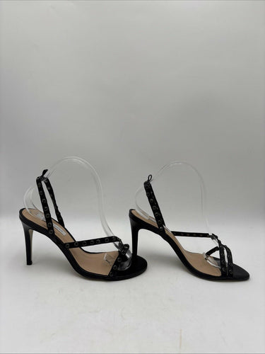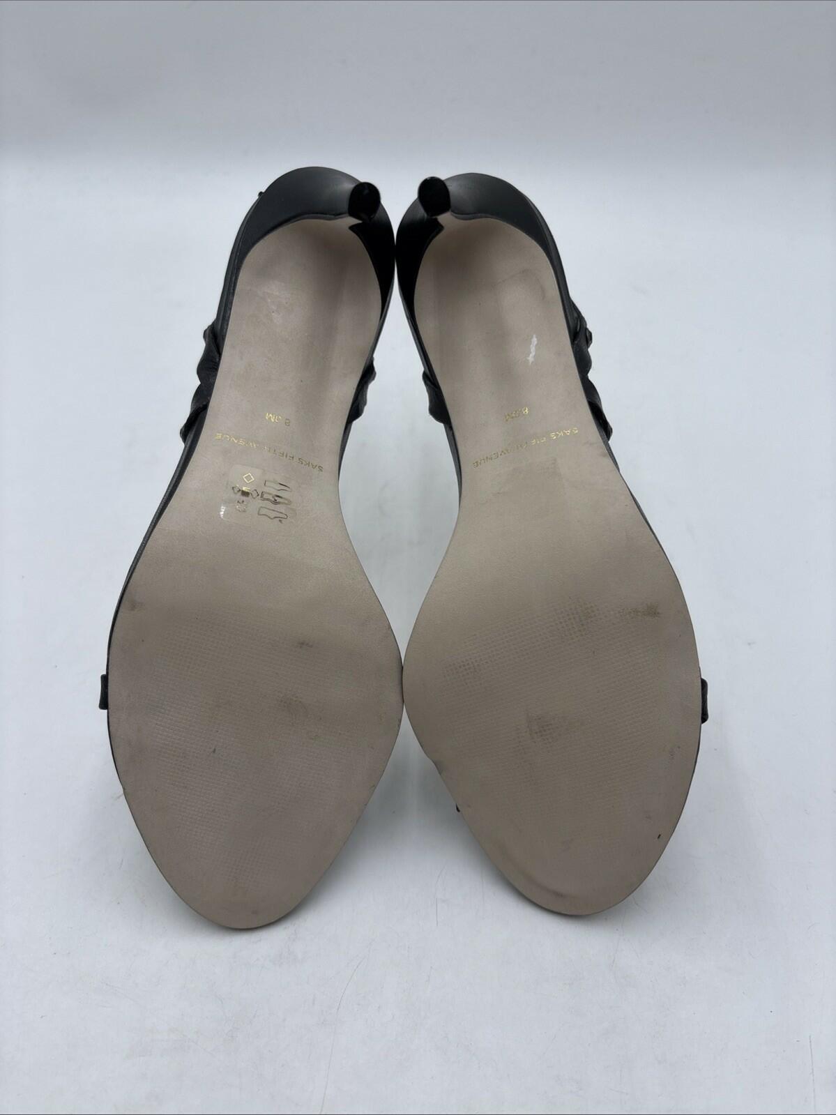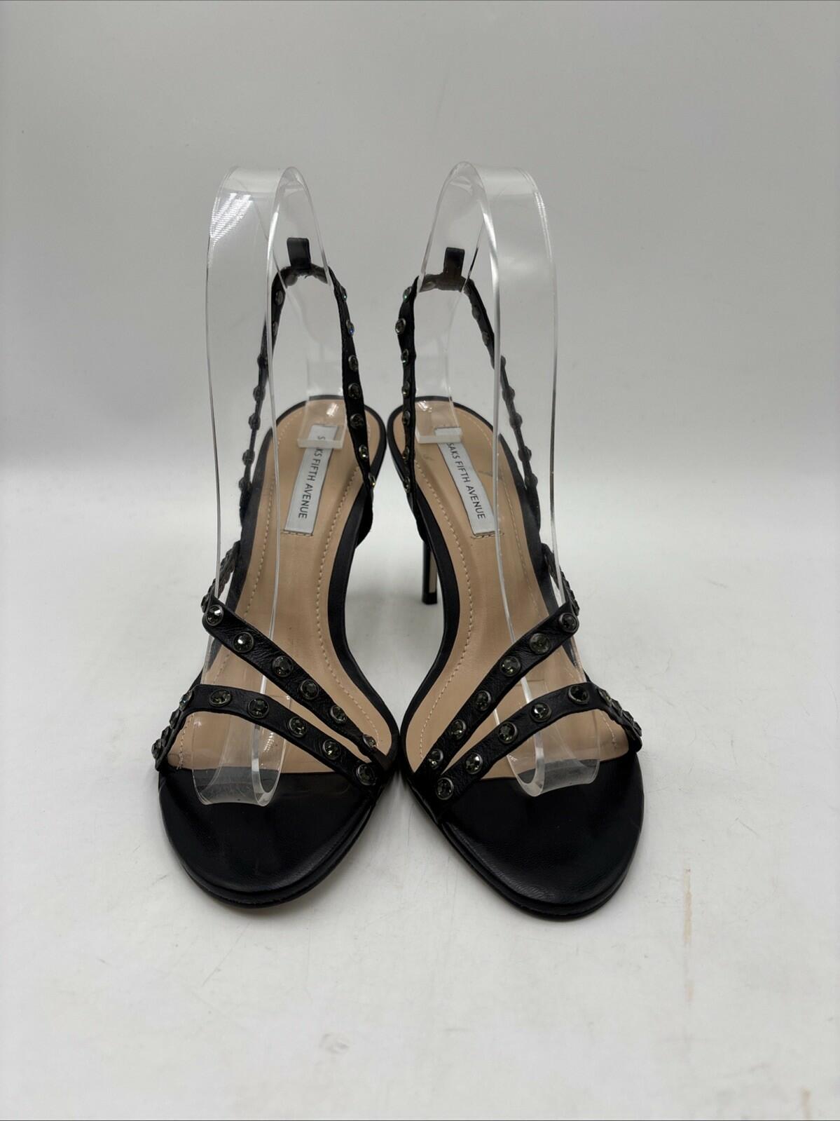 Women’s Saks Fifth Avenue Embellished Leather Stiletto Heel Sandals Black Sz 8M - Very Good
