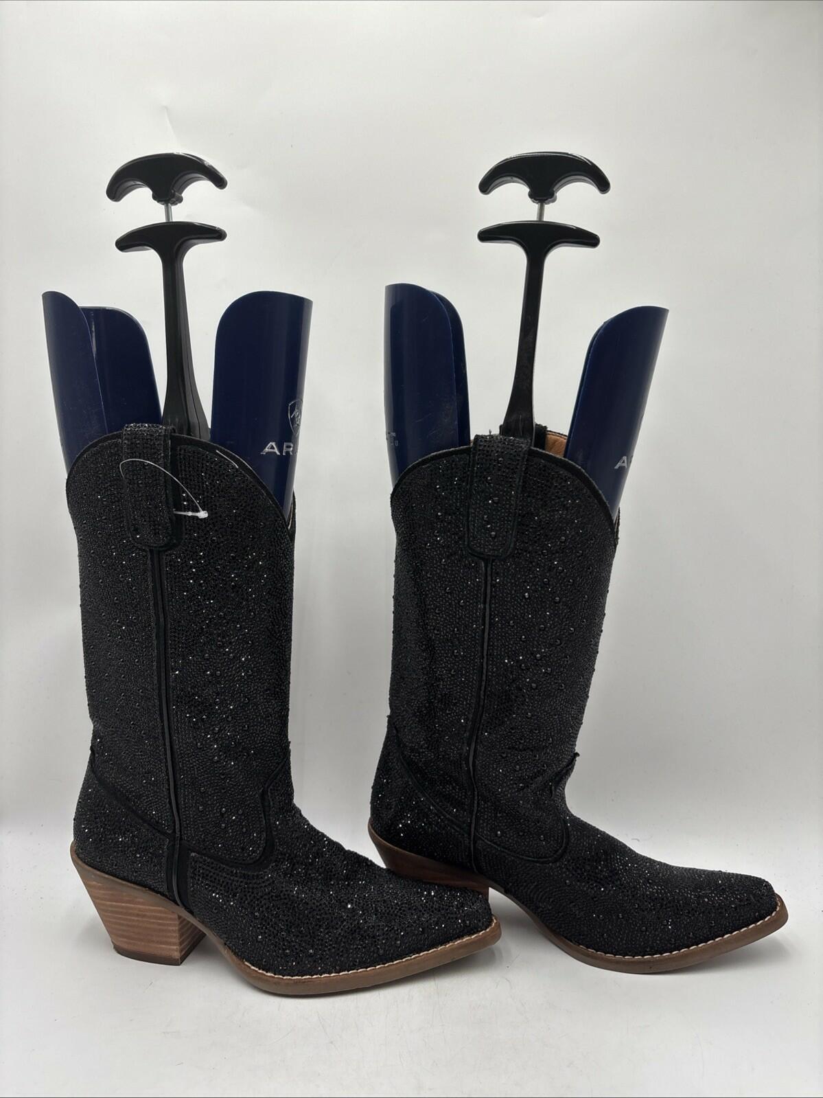 Women's Dingo Silver Dollar Western Boots Black Size 7.5M - Very Good